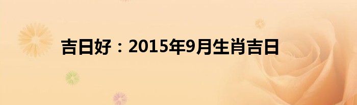 大家好,综合小编来为大家讲解下。吉日好:2015年9月生肖吉日这个很多人还不知道,现在让我们一起来看看吧!