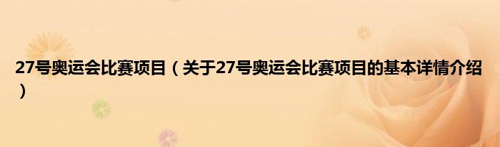 本文关于27号奥运会比赛项目的基本详情介绍就讲解完毕,希望对大家有所帮助。