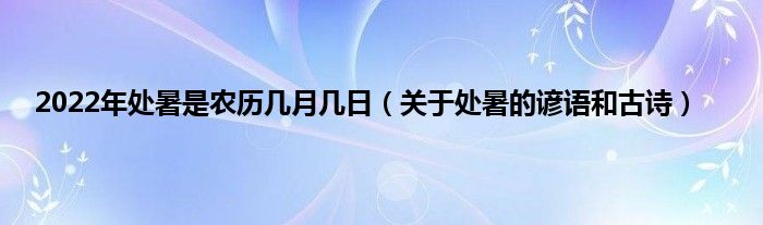 大家好,综合小编来为大家讲解下。2022年处暑是农历几月几日,关于处暑的谚语和古诗这个很多人还不知道,现在让我们一起来看看吧!