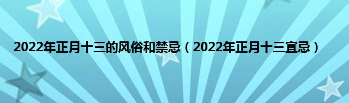 大家好,综合小编来为大家讲解下。2022年正月十三的风俗和禁忌,2022年正月十三宜忌这个很多人还不知道,现在让我们一起来看看吧!