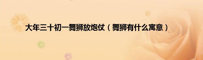 本文大年三十初一舞狮放炮仗,舞狮有什么寓意到此分享完毕,希望对大家有所帮助。
