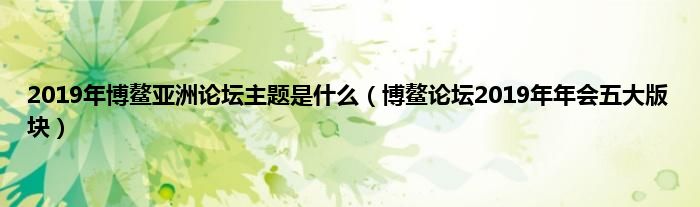 大家好,综合小编来为大家讲解下。2019年博鳌亚洲论坛主题是什么,博鳌论坛2019年年会五大版块这个很多人还不知道,现在让我们一起来看看吧!