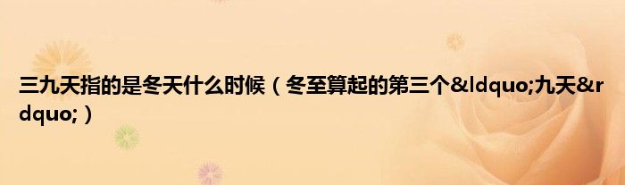 大家好,综合小编来为大家讲解下。三九天指的是冬天什么时候,冬至算起的第三个“九天”这个很多人还不知道,现在让我们一起来看看吧!