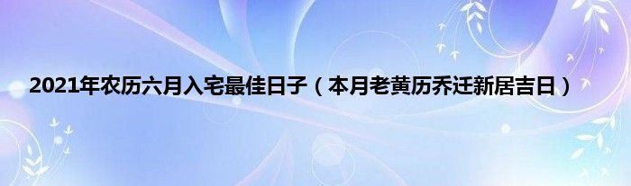大家好,综合小编来为大家讲解下。2021年农历六月入宅最佳日子,本月老黄历乔迁新居吉日这个很多人还不知道,现在让我们一起来看看吧!
