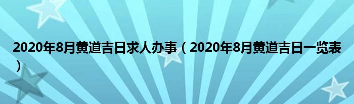 大家好,综合小编来为大家讲解下。2020年8月黄道吉日求人办事,2020年8月黄道吉日一览表这个很多人还不知道,现在让我们一起来看看吧!