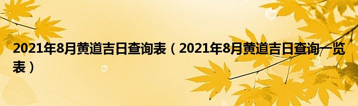 大家好,综合小编来为大家讲解下。2021年8月黄道吉日查询表,2021年8月黄道吉日查询一览表这个很多人还不知道,现在让我们一起来看看吧!