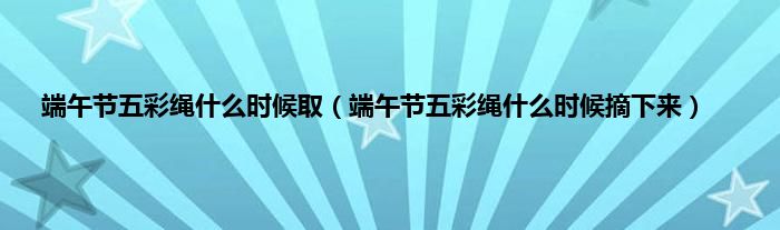 本文端午节五彩绳什么时候取,端午节五彩绳什么时候摘下来到此分享完毕,希望对大家有所帮助。