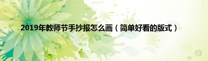大家好,综合小编来为大家讲解下。2019年教师节手抄报怎么画,简单好看的版式这个很多人还不知道,现在让我们一起来看看吧!