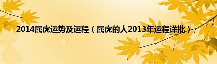 大家好,综合小编来为大家讲解下。2014属虎运势及运程,属虎的人2013年运程详批这个很多人还不知道,现在让我们一起来看看吧!