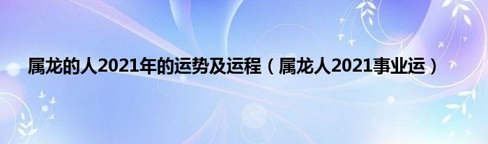 本文属龙的人2021年的运势及运程,属龙人2021事业运到此分享完毕,希望对大家有所帮助。