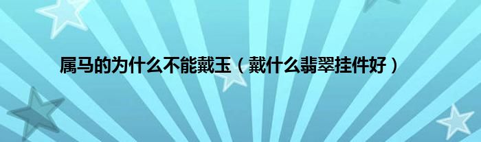 大家好,综合小编来为大家讲解下。属马的为什么不能戴玉,戴什么翡翠挂件好这个很多人还不知道,现在让我们一起来看看吧!