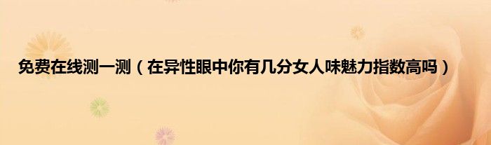 本文免费在线测一测,在异性眼中你有几分女人味魅力指数高吗到此分享完毕,希望对大家有所帮助。