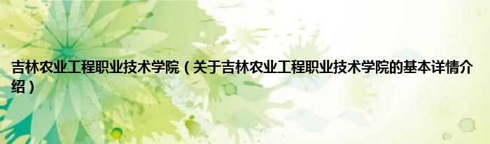 本文关于吉林农业工程职业技术学院的基本详情介绍就讲解完毕,希望对大家有所帮助。