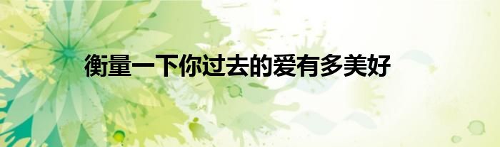 大家好,综合小编来为大家讲解下。衡量一下你过去的爱有多美好这个很多人还不知道,现在让我们一起来看看吧!