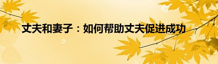 大家好,综合小编来为大家讲解下。丈夫和妻子:如何帮助丈夫促进成功这个很多人还不知道,现在让我们一起来看看吧!