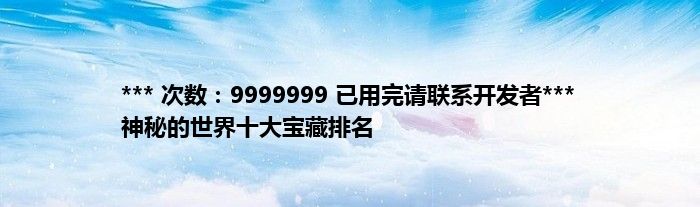 大家好,综合小编来为大家讲解下。*** 次数:9999999 已用完请联系开发者*** 神秘的世界十大宝藏排名这个很多人还不知道,现在让我们一起来看看吧!