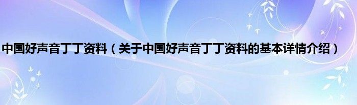 本文关于中国好声音丁丁资料的基本详情介绍就讲解完毕,希望对大家有所帮助。