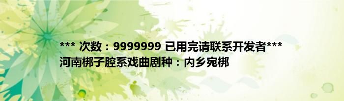 本文*** 次数:9999999 已用完请联系开发者*** 河南梆子腔系戏曲剧种:内乡宛梆到此分享完毕,希望对大家有所帮助。
