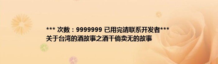 大家好,综合小编来为大家讲解下。*** 次数:9999999 已用完请联系开发者*** 关于台湾的酒故事之酒干倘卖无的故事这个很多人还不知道,现在让我们一起来看看吧!