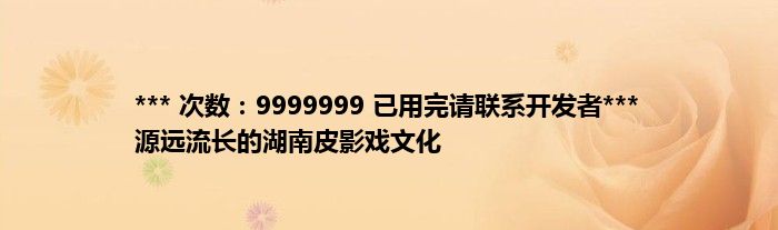 本文*** 次数:9999999 已用完请联系开发者*** 源远流长的湖南皮影戏文化到此分享完毕,希望对大家有所帮助。