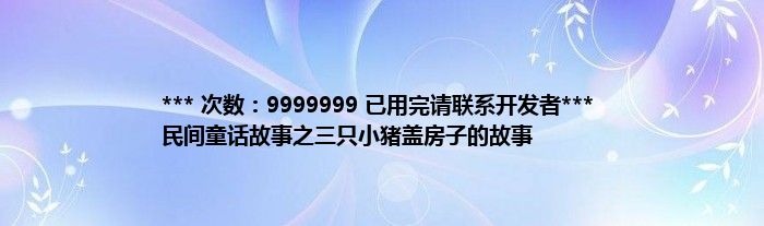 大家好,综合小编来为大家讲解下。*** 次数:9999999 已用完请联系开发者*** 民间童话故事之三只小猪盖房子的故事这个很多人还不知道,现在让我们一起来看看吧!