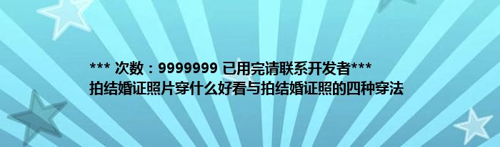 大家好,综合小编来为大家讲解下。*** 次数:9999999 已用完请联系开发者*** 拍结婚证照片穿什么好看与拍结婚证照的四种穿法这个很多人还不知道,现在让我们一起来看看吧!