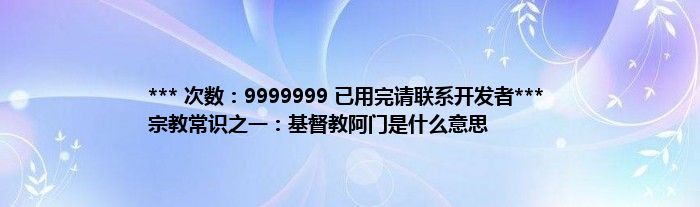 本文*** 次数:9999999 已用完请联系开发者*** 宗教常识之一:基督教阿门是什么意思到此分享完毕,希望对大家有所帮助。