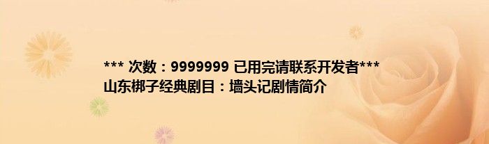 大家好,综合小编来为大家讲解下。*** 次数:9999999 已用完请联系开发者*** 山东梆子经典剧目:墙头记剧情简介这个很多人还不知道,现在让我们一起来看看吧!