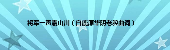 大家好,综合小编来为大家讲解下。将军一声震山川,白鹿原华阴老腔曲词这个很多人还不知道,现在让我们一起来看看吧!