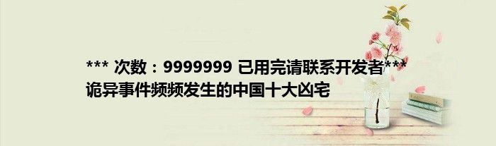 大家好,综合小编来为大家讲解下。*** 次数:9999999 已用完请联系开发者*** 诡异事件频频发生的中国十大凶宅这个很多人还不知道,现在让我们一起来看看吧!