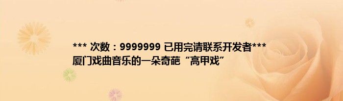 本文*** 次数:9999999 已用完请联系开发者*** 厦门戏曲音乐的一朵奇葩“高甲戏”到此分享完毕,希望对大家有所帮助。