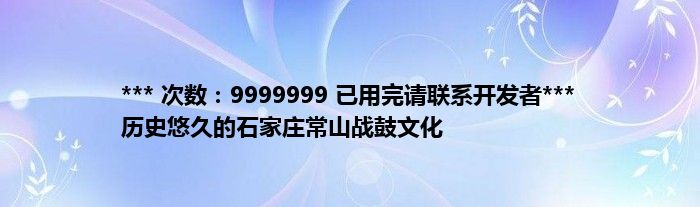 本文*** 次数:9999999 已用完请联系开发者*** 历史悠久的石家庄常山战鼓文化到此分享完毕,希望对大家有所帮助。
