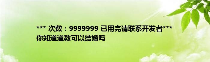 大家好,综合小编来为大家讲解下。*** 次数:9999999 已用完请联系开发者*** 你知道道教可以结婚吗这个很多人还不知道,现在让我们一起来看看吧!