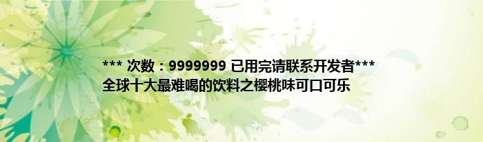 大家好,综合小编来为大家讲解下。*** 次数:9999999 已用完请联系开发者*** 全球十大最难喝的饮料之樱桃味可口可乐这个很多人还不知道,现在让我们一起来看看吧!
