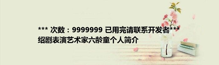 本文*** 次数:9999999 已用完请联系开发者*** 绍剧表演艺术家六龄童个人简介到此分享完毕,希望对大家有所帮助。