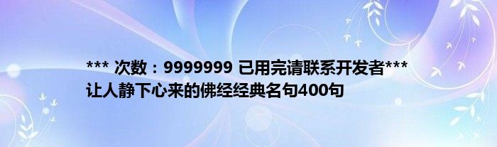本文*** 次数:9999999 已用完请联系开发者*** 让人静下心来的佛经经典名句400句到此分享完毕,希望对大家有所帮助。
