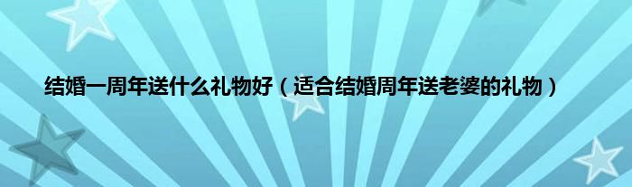 大家好,综合小编来为大家讲解下。结婚一周年送什么礼物好,适合结婚周年送老婆的礼物这个很多人还不知道,现在让我们一起来看看吧!