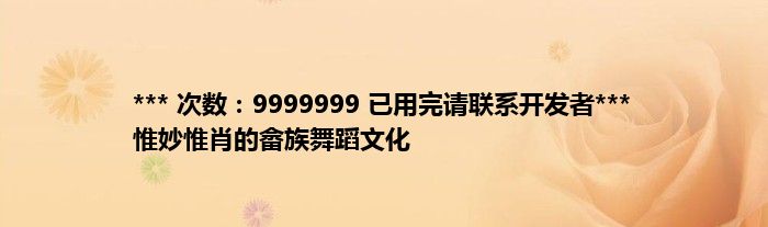 本文*** 次数:9999999 已用完请联系开发者*** 惟妙惟肖的畲族舞蹈文化到此分享完毕,希望对大家有所帮助。