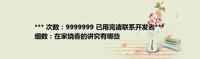 大家好,综合小编来为大家讲解下。*** 次数:9999999 已用完请联系开发者*** 细数:在家烧香的讲究有哪些这个很多人还不知道,现在让我们一起来看看吧!