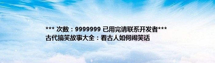 大家好,综合小编来为大家讲解下。*** 次数:9999999 已用完请联系开发者*** 古代搞笑故事大全:看古人如何闹笑话这个很多人还不知道,现在让我们一起来看看吧!