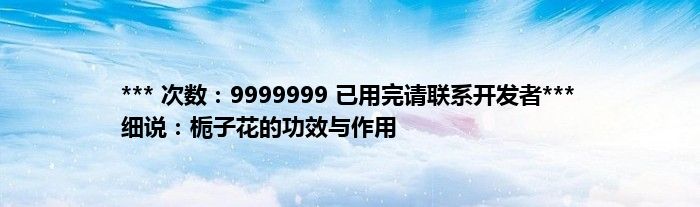 本文*** 次数:9999999 已用完请联系开发者*** 细说:栀子花的功效与作用到此分享完毕,希望对大家有所帮助。