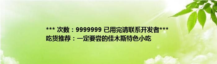 大家好,综合小编来为大家讲解下。*** 次数:9999999 已用完请联系开发者*** 吃货推荐:一定要尝的佳木斯特色小吃这个很多人还不知道,现在让我们一起来看看吧!