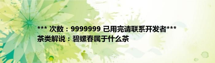 本文*** 次数:9999999 已用完请联系开发者*** 茶类解说:碧螺春属于什么茶到此分享完毕,希望对大家有所帮助。