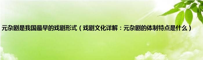 大家好,综合小编来为大家讲解下。元杂剧是我国最早的戏剧形式,戏剧文化详解:元杂剧的体制特点是什么这个很多人还不知道,现在让我们一起来看看吧!