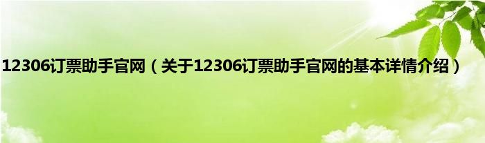 本文关于12306订票助手官网的基本详情介绍就讲解完毕,希望对大家有所帮助。