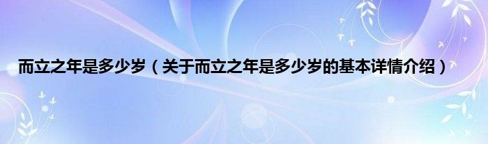 本文关于而立之年是多少岁的基本详情介绍就讲解完毕,希望对大家有所帮助。