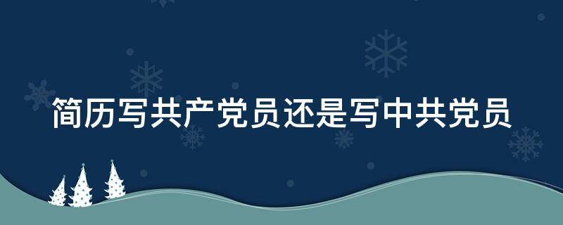 简历写中共党员,依据个人实际情况,如实填写。中国共产党党员,简称中共党员、共产党员或党员,分为中国共产党正式党员和中国共产党预备(候补)党员,是指按照《中国共产党章程》规定的入党条件和程序被批准加入中国共产党的工人、农民、军人、知识分子和其他社会阶层的先进分子。来源人群:年满十八岁的中国工人、农民、军人、知识分子和其他社会阶层的先进分子,承认党的纲领和章程,愿意参加党的一个组织并在其中积极工作、执行党的决议和按期交纳党费的,可以申请加入中国共产党。