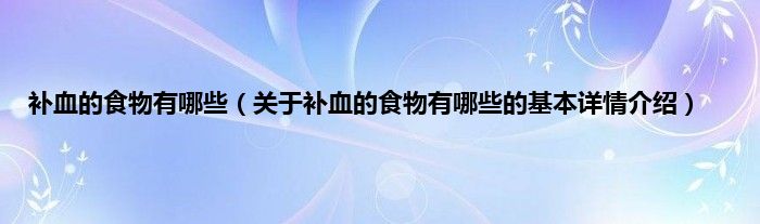 本文关于补血的食物有哪些的基本详情介绍就讲解完毕,希望对大家有所帮助。