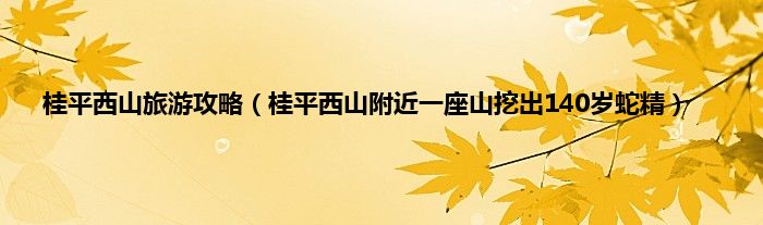 以上就是【桂平西山旅游攻略,桂平西山附近一座山挖出140岁蛇精】相关内容。