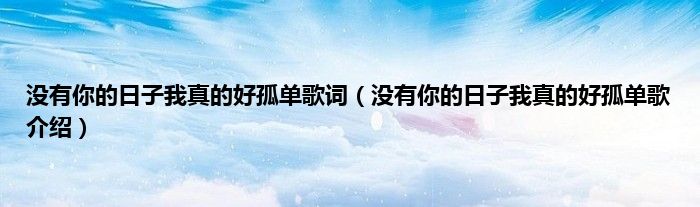 欢迎观看本篇文章,小升来为大家解答以上问题。没有你的日子我真的好孤单歌词,没有你的日子我真的好孤单歌介绍很多人还不知道,现在让我们一起来看看吧!
